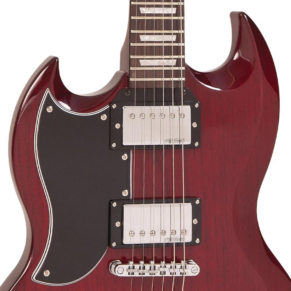 Mahogany body provides resonance, tone and ‘correct weight’ comfort. The Vintage VS6 features a unique, evolutionary, offset double cut body shape, ingeniously-designed offset heel and enhanced treble side cutaway providing improved access to the upper reaches of the fretboard.